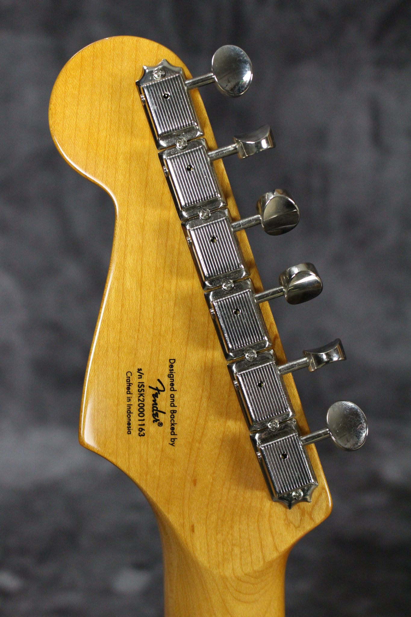 Pickups/Hardware: Fender Designed Alnico Single-Coil pickups,vintage style tuning keys, 6 saddle vintage style synchronized tremolo bridge, white plastic knobs, bone nut.