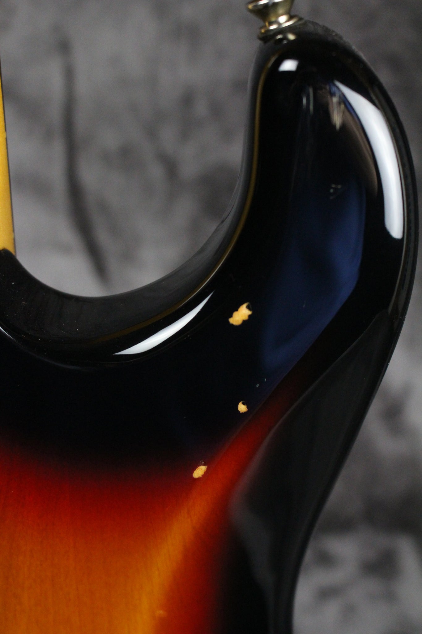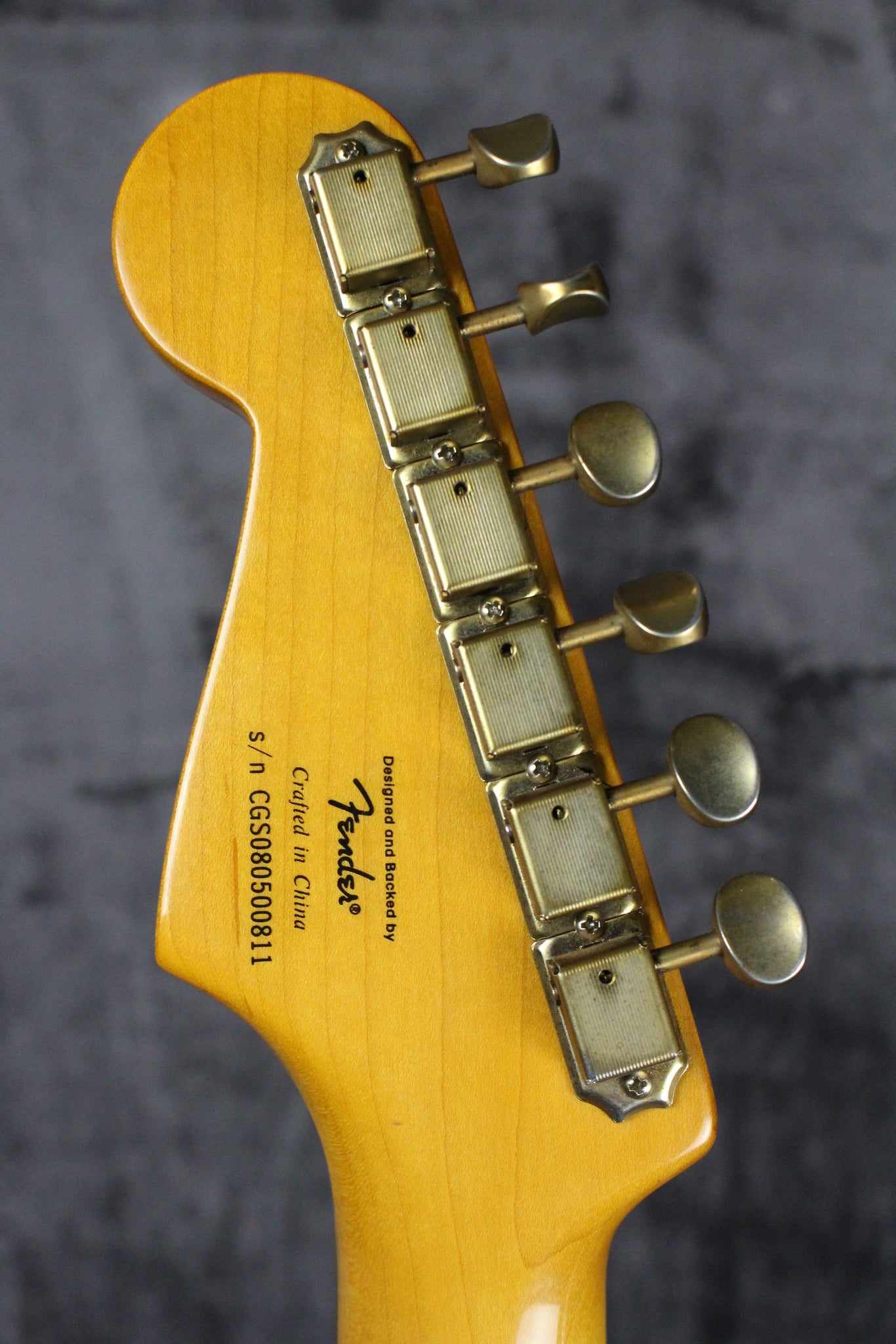 Pickups/Hardware: Three single coil pickups, vintage style tuning keys, six-saddle bridge, master volume/two tone controls/5-way pickup selector.