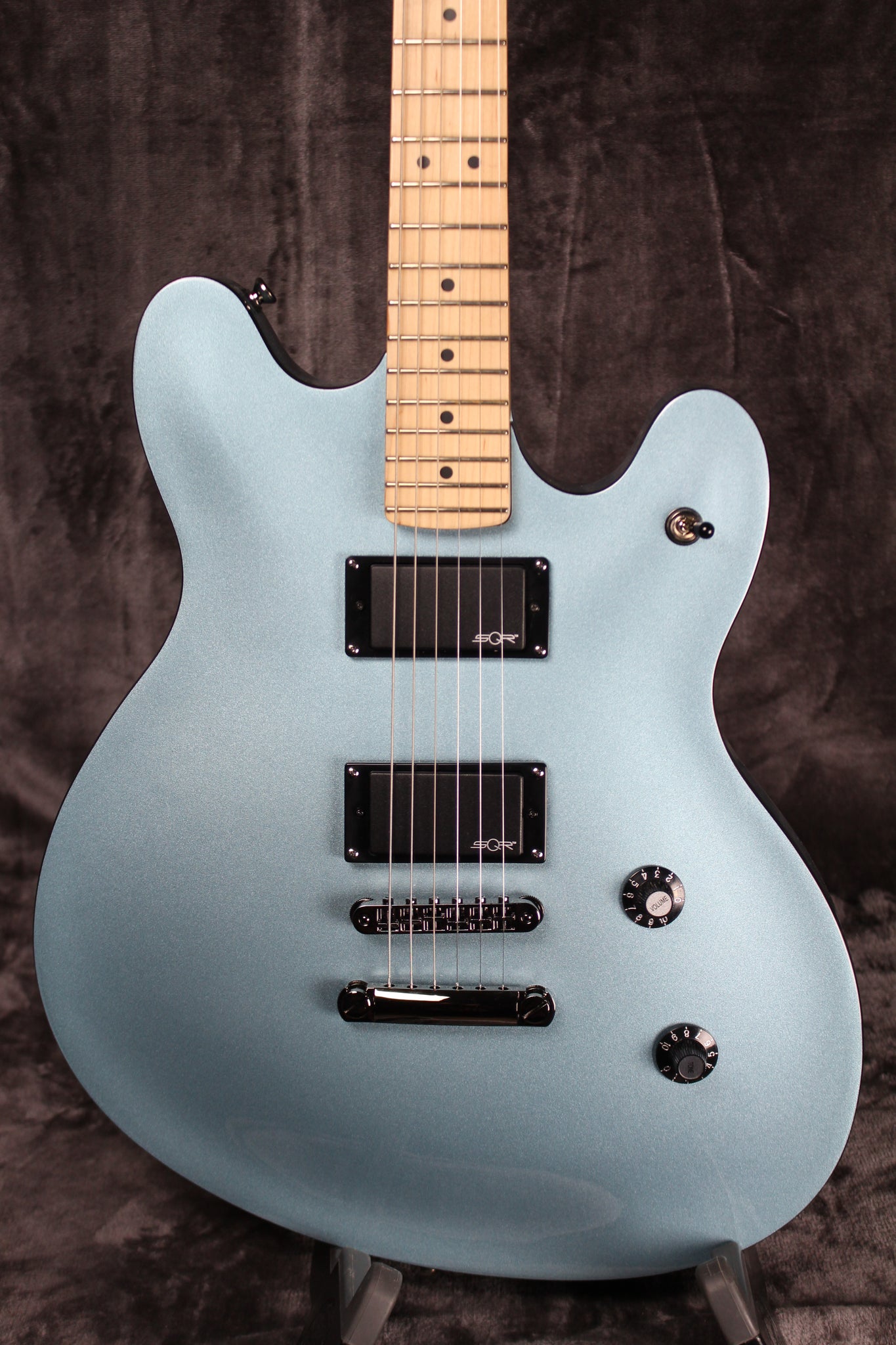 Body: Laminated Maple in Ice Blue Metallic.