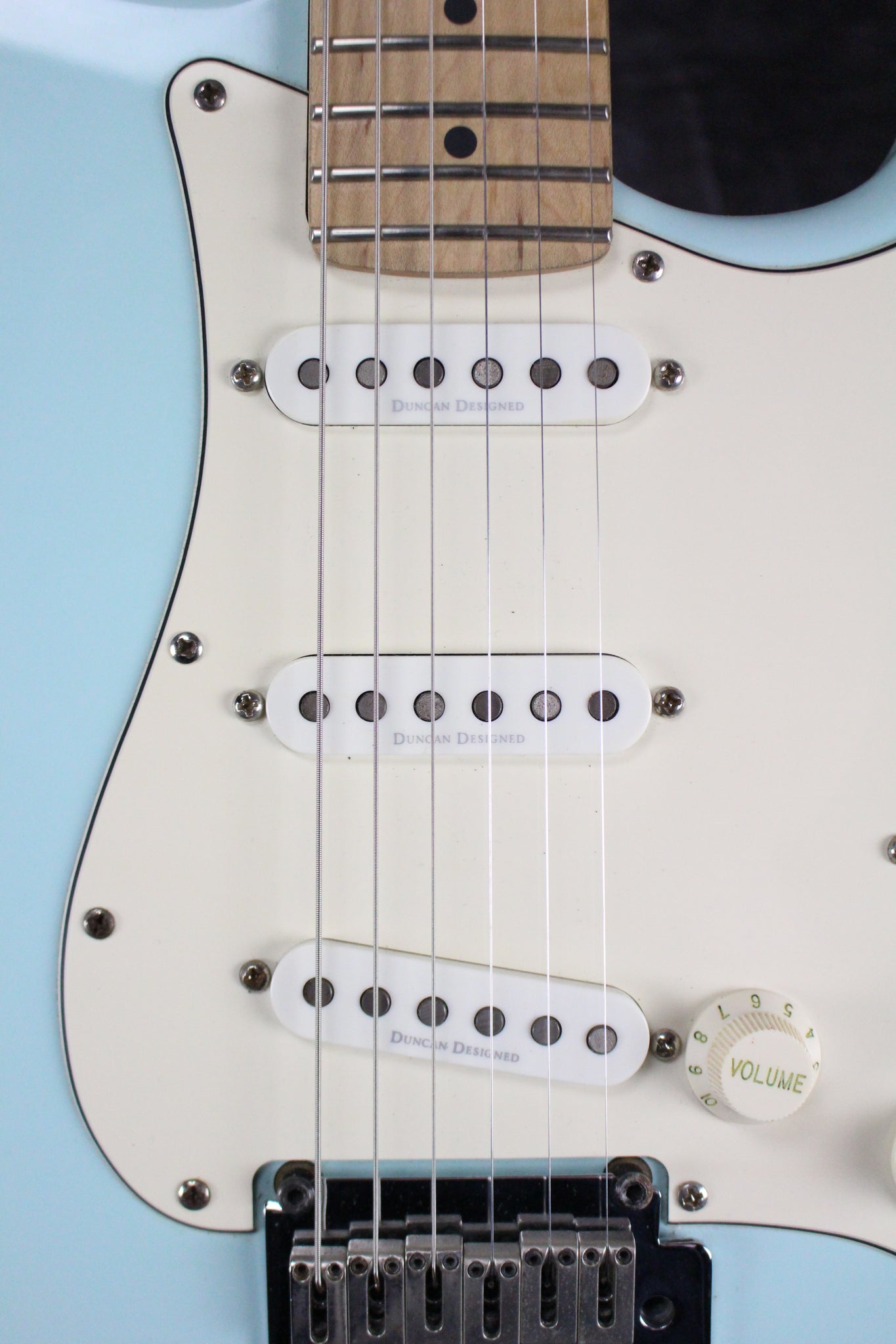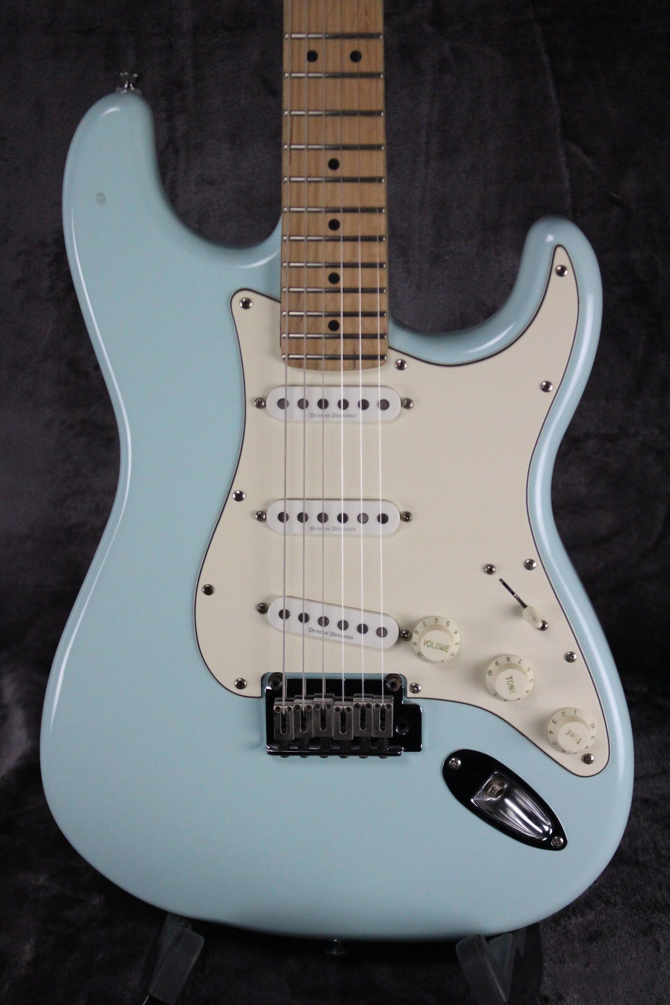 Pickups/Hardware: Three Seymour Duncan-designed single-coil pickups, Standard die-cast tuning keys, Synchronous twin-pivot tremolo bridge, aged white plastic knobs, Synthetic Bone nut.