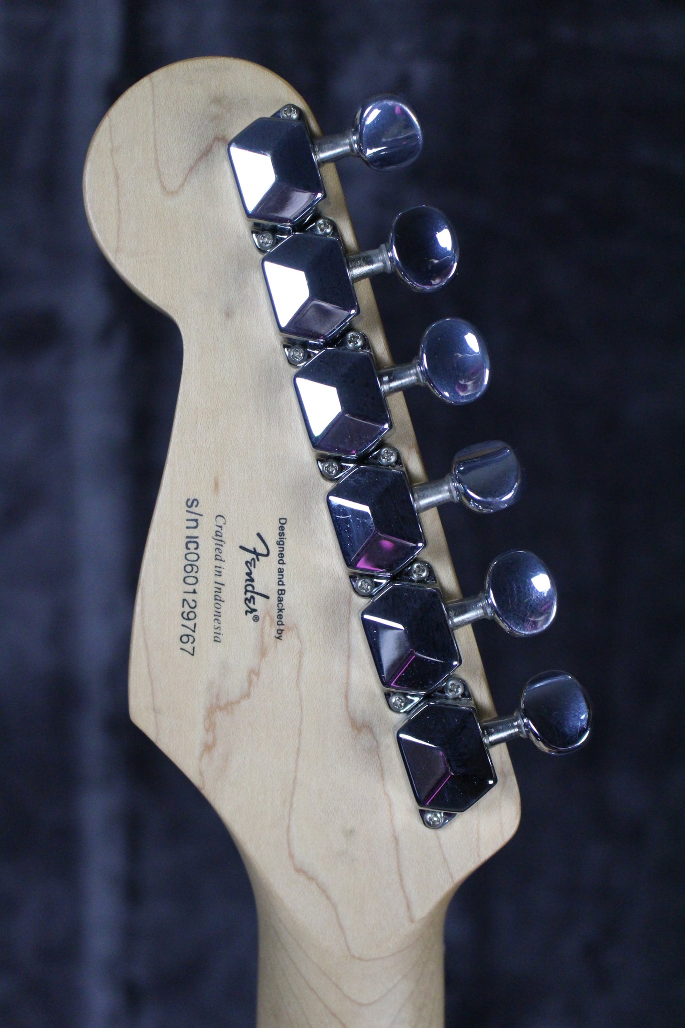 The Squier Mini Stratocaster is the perfect companion for players seeking a reduced-size instrument with classic styling and familiar Fender tone. Highlights include a thin and lightweight body, an easy-to-play "C"-shaped neck profile, a trio of Squier single-coil pickups with 5-way switching for sonic variety, and a hardtail bridge for solid tuning stability.