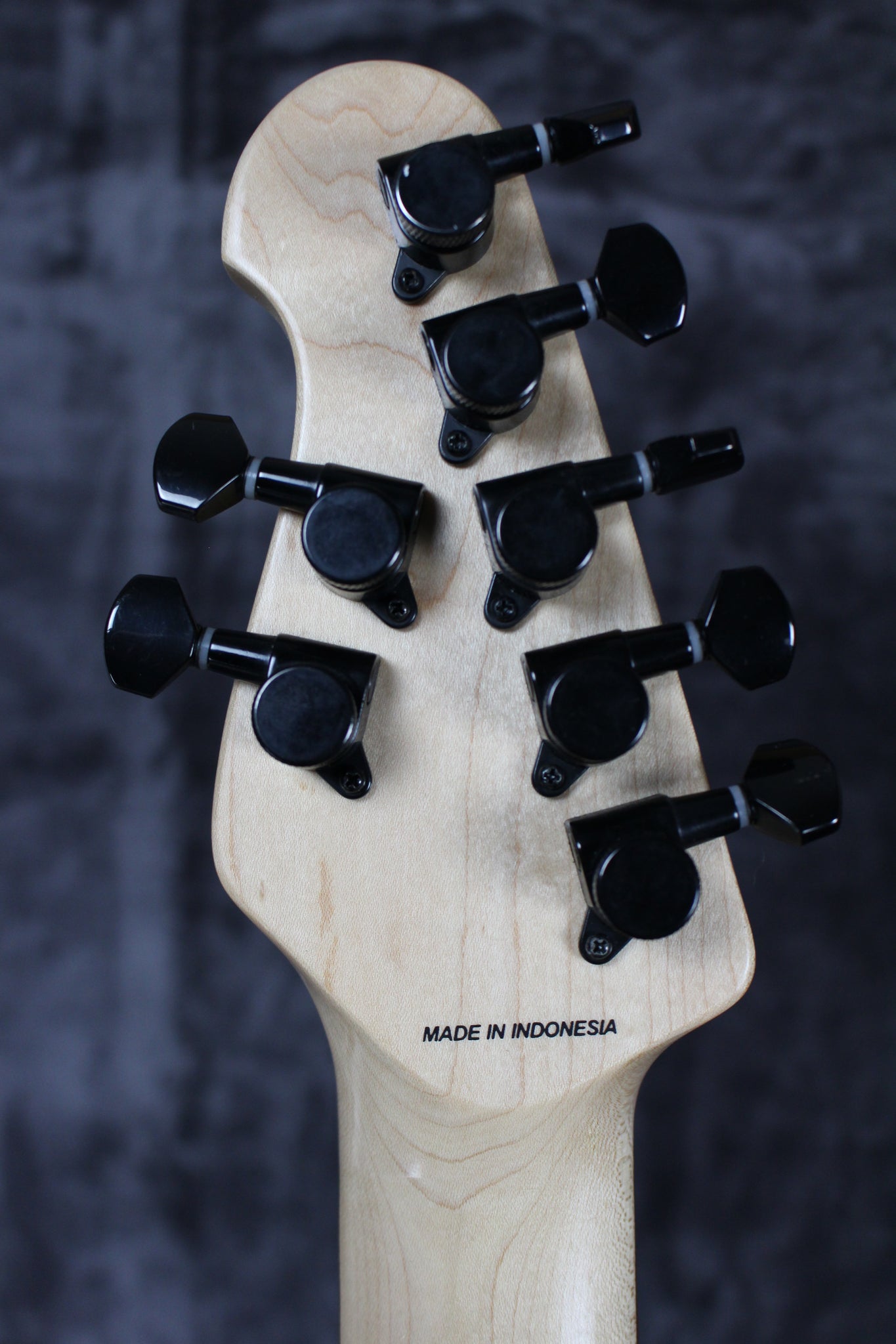 Summary: This Sterling JP70 7 String features die-cast locking tuning machines, the JP Shield logo inlaid at the first fret, a contoured forearm scoop, and a full floating modern tremolo bridge, the JP70 is the personification of a shredder’s dream.
