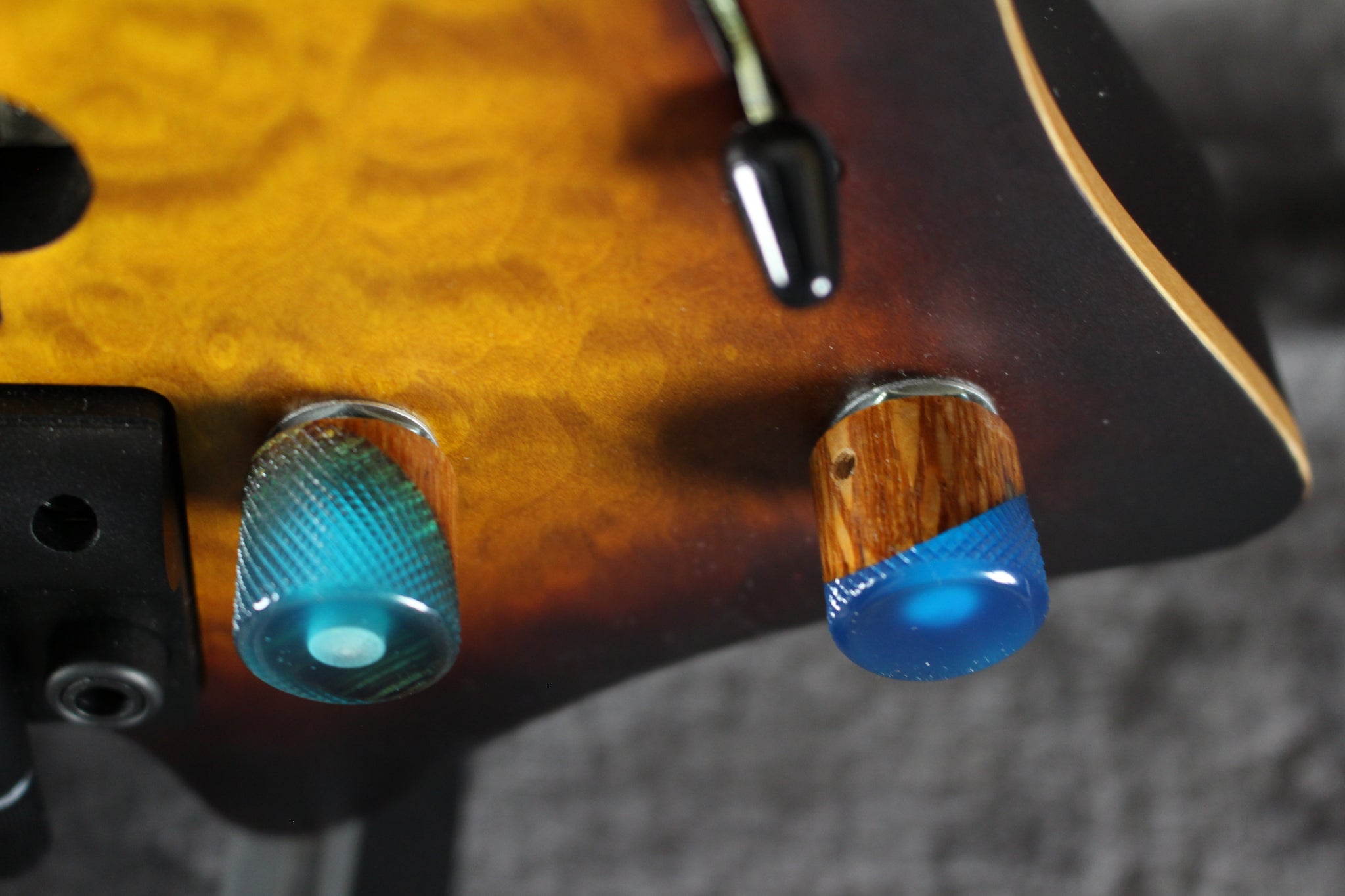 Pickups/Hardware: Dual Bare Knuckle Mothers Milk single coils with a Schecter Nick Johnson Humbucker pickup, Strandberg EGS Series 5 fixed bridge & string locks, new custom knobs, stainless steel zero fret, graphite nut.