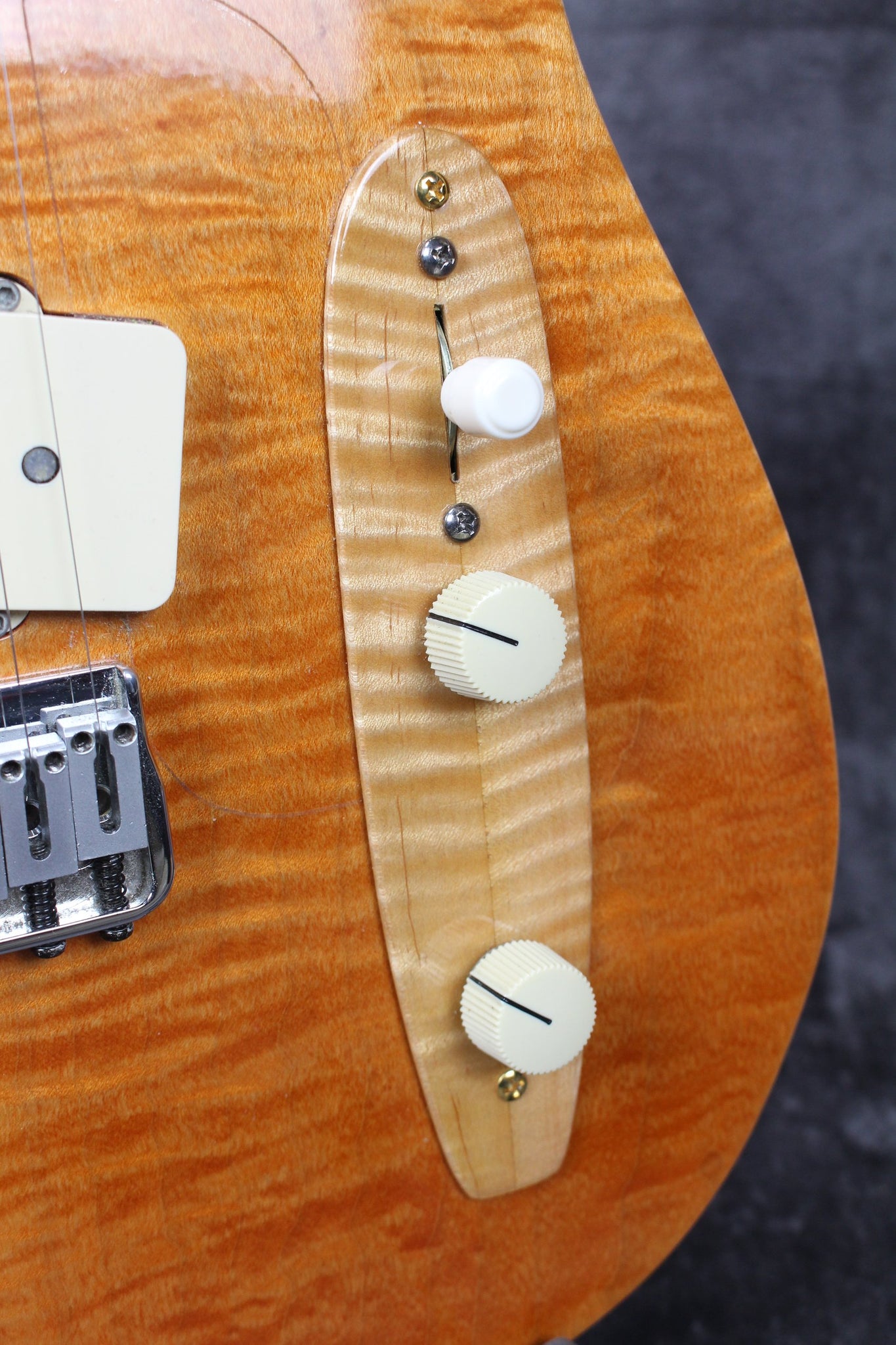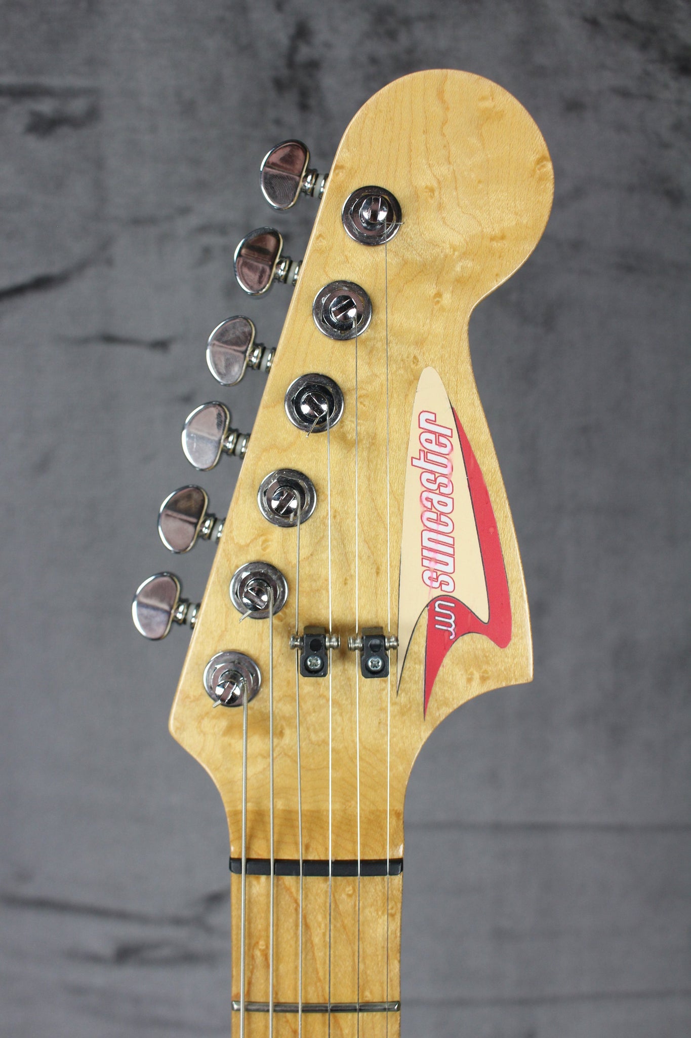 Summary: The Suncaster is a custom-built thinline telecaster style guitar. It has beautiful Birdseye maple neck and a well-built mahogany body with a gorgeous, flamed maple top. It comes equipped with soap bar style pickups and telecaster style controls that sound great. This guitar is in excellent shape and plays great up and down the neck.
