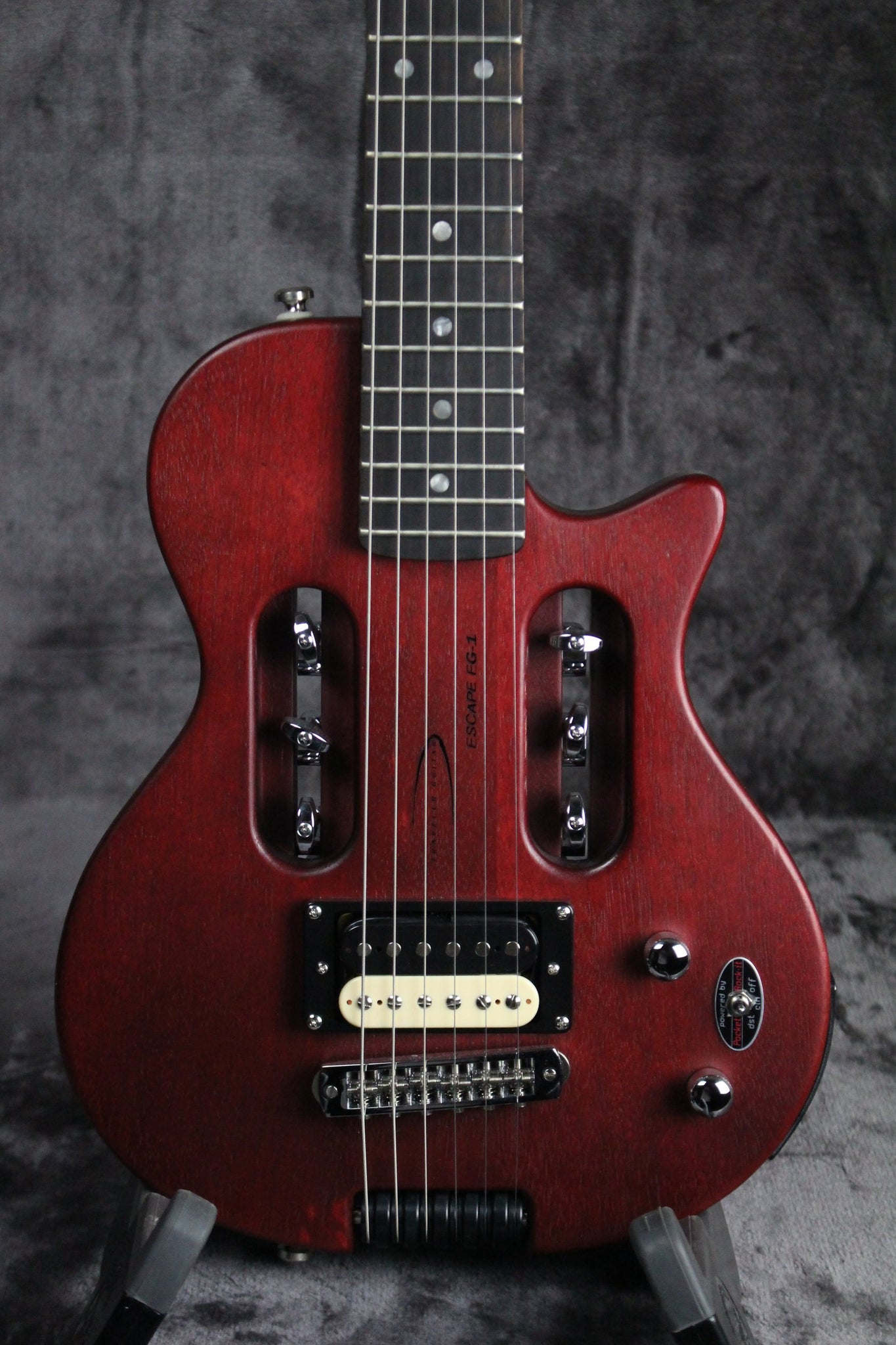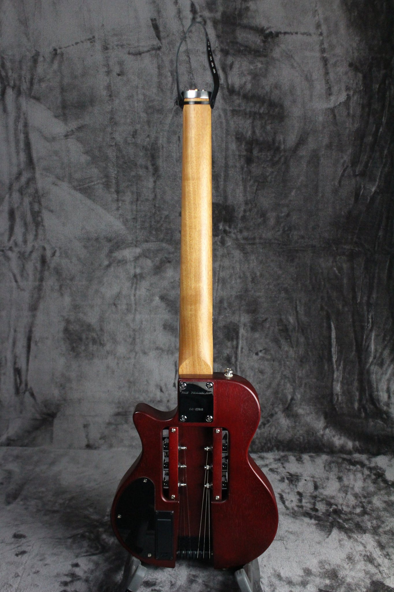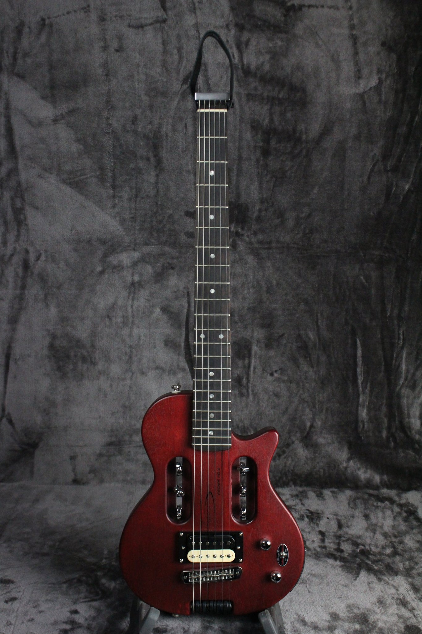 Pickups/Hardware: One humbucker in the bridge position, slotted headstock style tuning keys in the body, master volume and tone controls truss rod adjustment at the top of the headstock, roller style bridge.