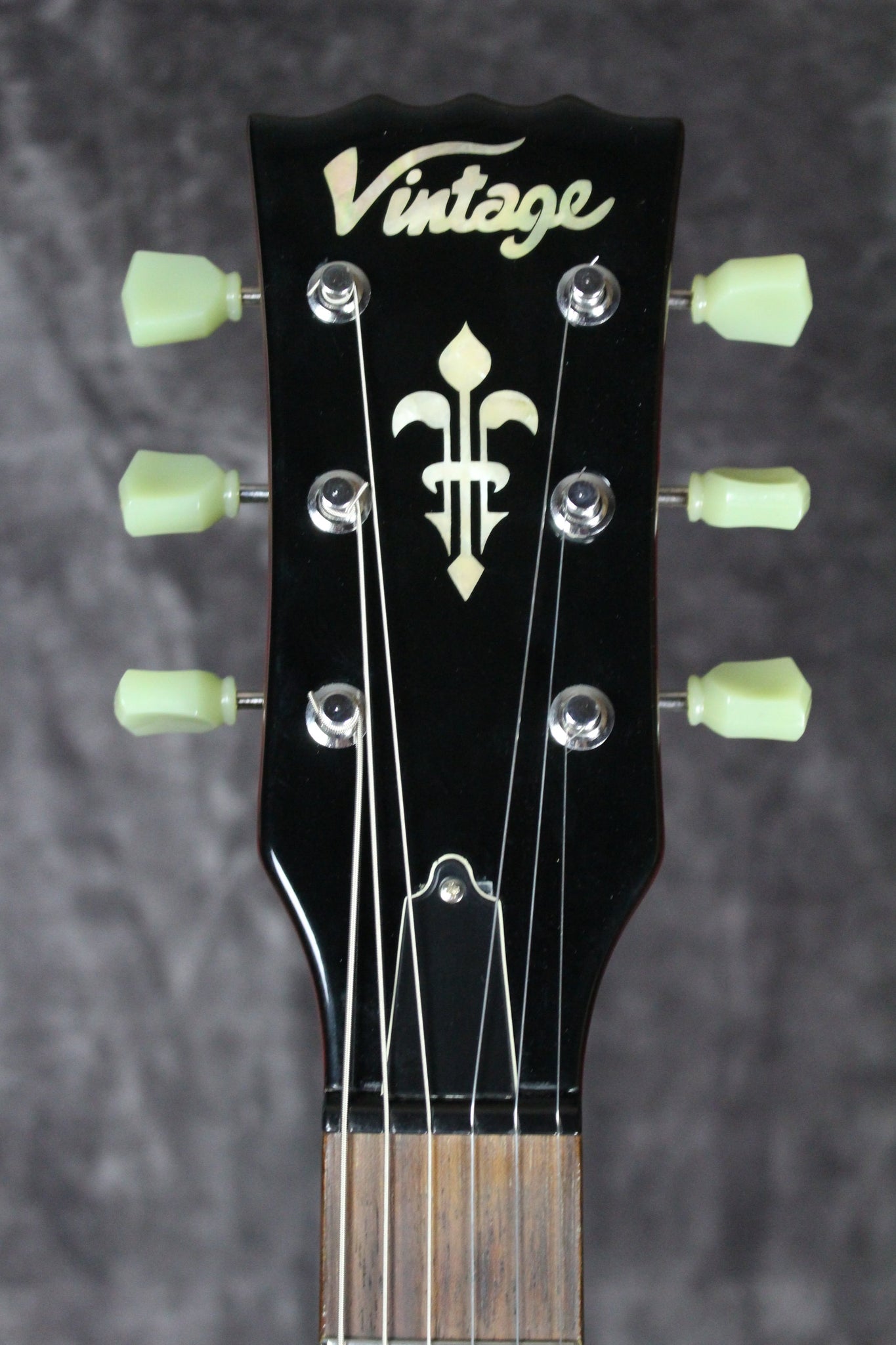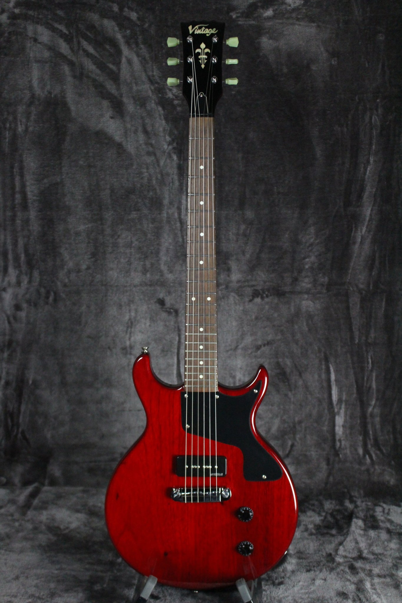 Summary: This double cut, solid body V130CRS employs a single P90 pickup and straight-ahead circuitry. The Vintage V130 sports all Wilkinson hardware and pickup, and a very authentic feeling neck with nice large frets. This guitar sports a mahogany body and neck with a rosewood fingerboard.