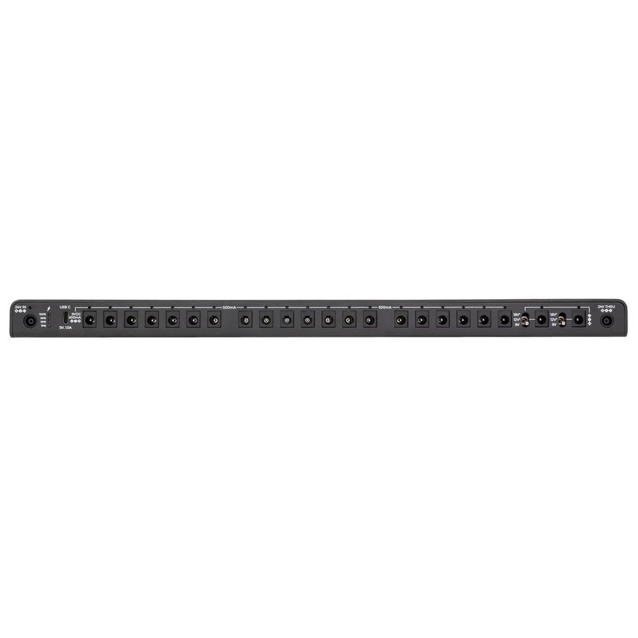 In the words of Walrus Audio: The Canvas Power 22 has 22 isolated power outputs delivering up to 500mA of clean power at 9v. Two of the outlets are variable voltage, letting you switch between 9v, 12v, and 18v for powering high-voltage pedals. It also includes a USB-C port for powering devices like your phone or tablet while you play.