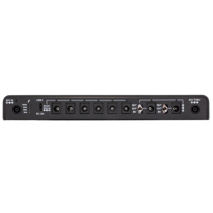 The Canvas Power 8 has 8 isolated power outputs delivering up to 500mA of clean power at 9v. Two of the outlets are variable voltage, letting you switch between 9v, 12v, and 18v for powering high-voltage pedals. It also includes a USB-C port for powering devices like your phone or tablet while you play.
