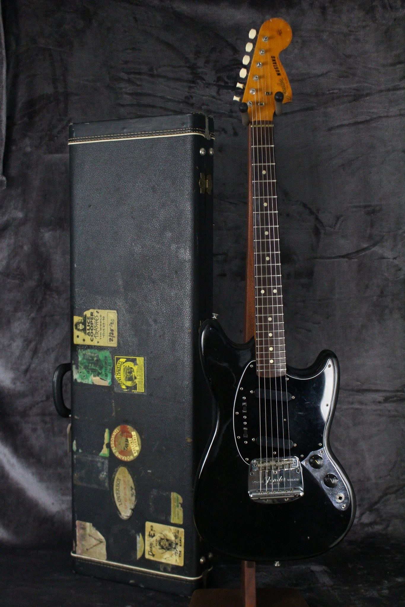 This refinished 1974 Fender Mustang in black carries the cool, no-nonsense attitude of a well-worn classic with a fresh edge. Its sleek, minimalist finish gives it a bold, almost rebellious presence—stripped of flash, but full of character. Decades of history still echo through its contours, worn edges, and subtle imperfections, telling stories of countless sessions, stages, and hands it’s passed through. The black refinish adds a touch of modern grit while letting the Mustang’s unmistakable silhouette speak for itself. It’s the kind of guitar that doesn’t try too hard—it just is. Honest, raw, and ready for whatever comes next.