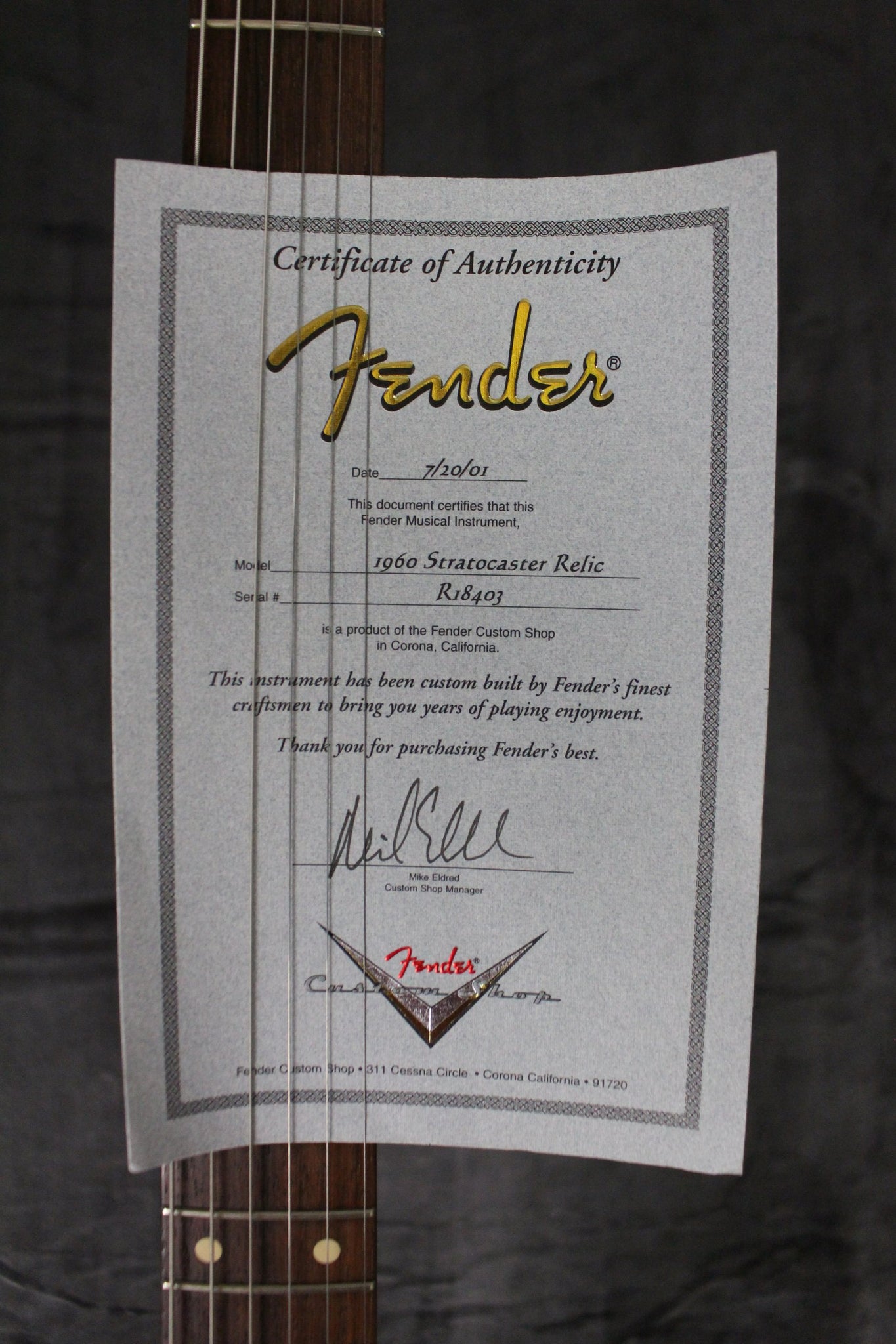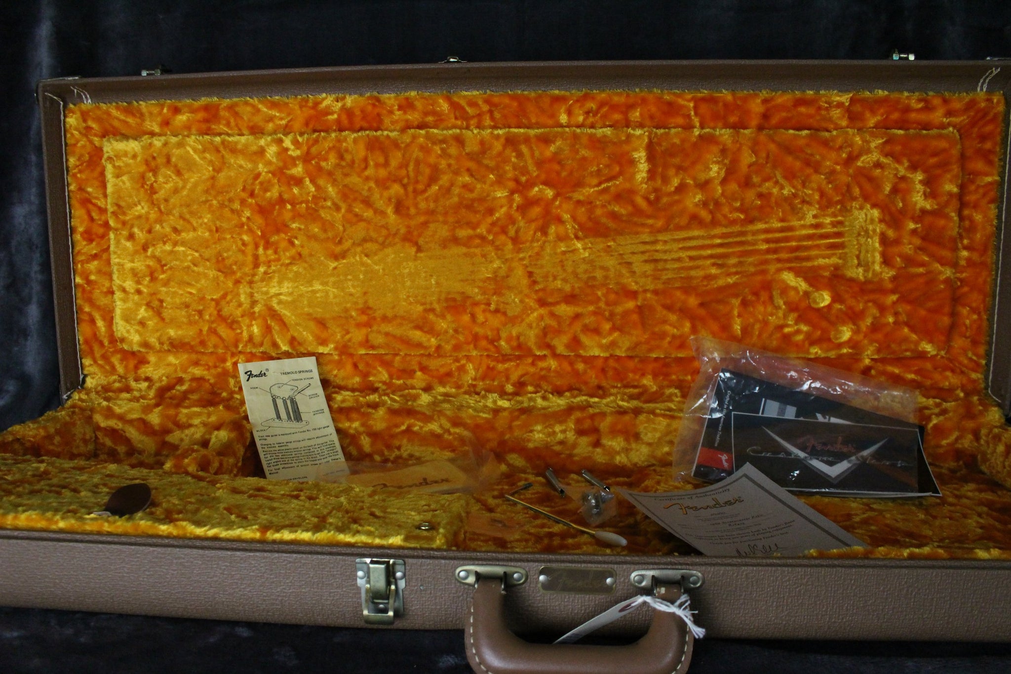 Pickups/Hardware: Original Fender Custom Shop pickups, vintage style tuning keys, Fender tremolo bridge, stock knobs, bone nut.