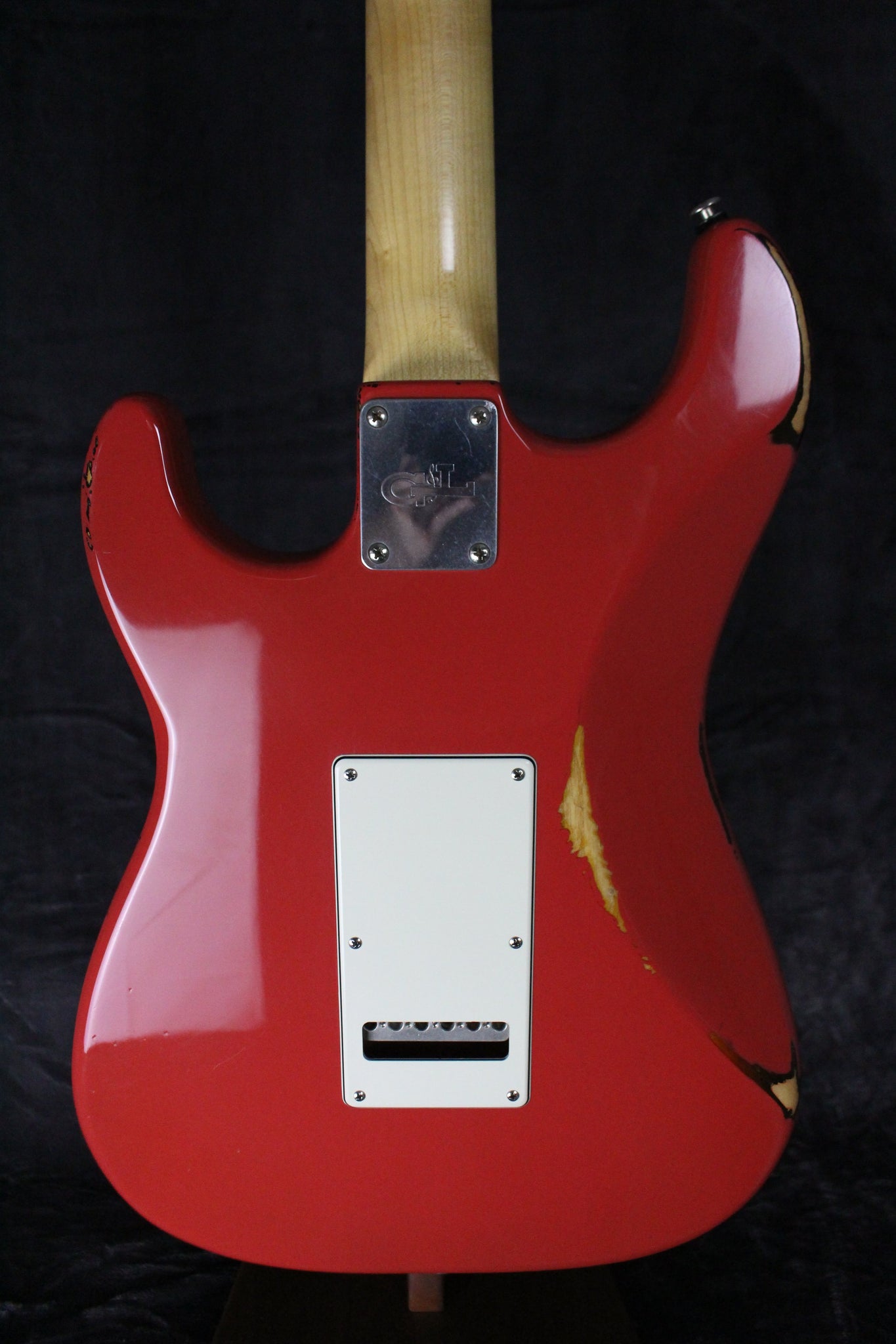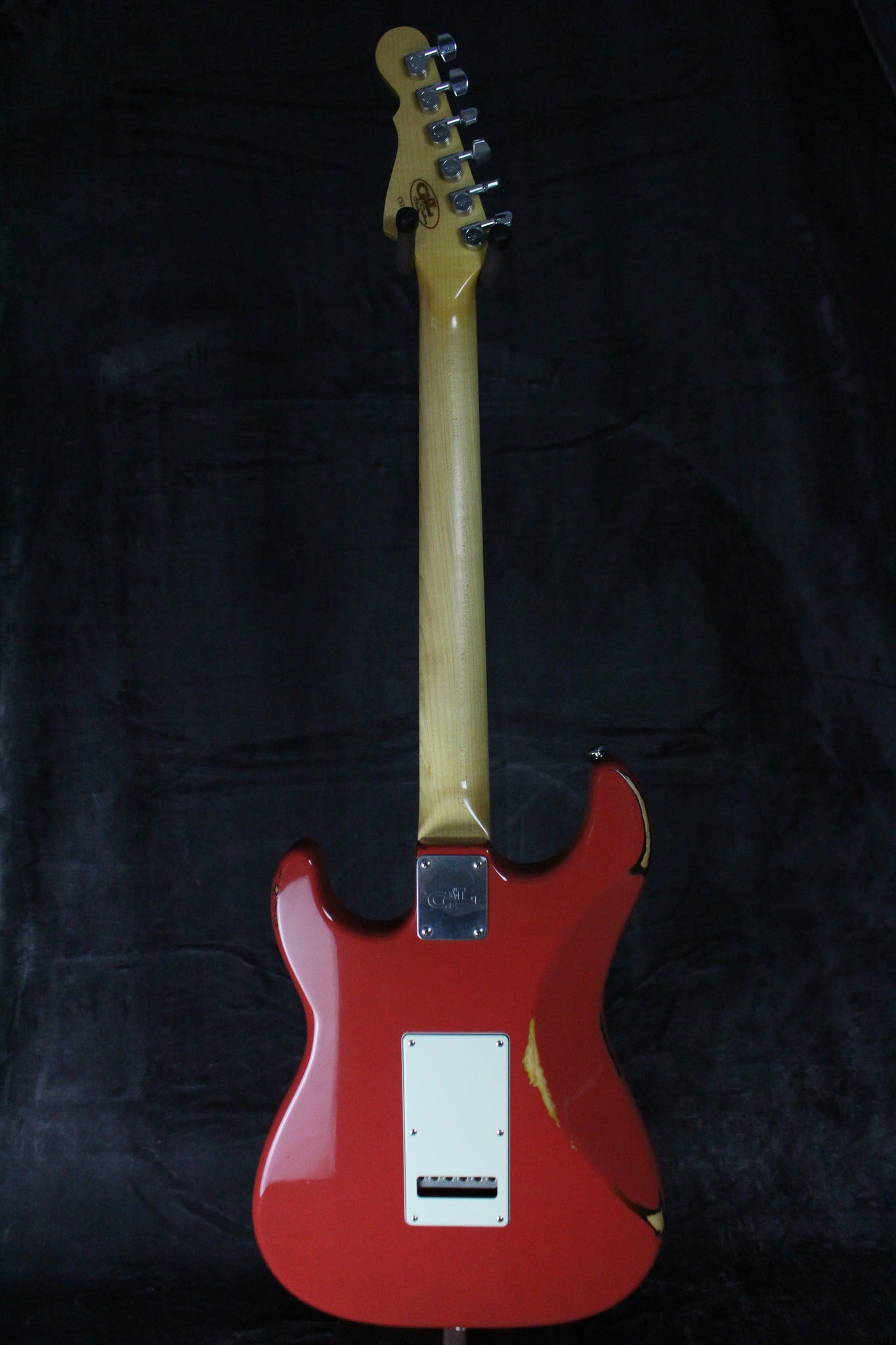The G&L Custom Shop Legacy in Fullerton Red over Sunburst is a striking fusion of bold individuality and vintage soul. Its layered finish hints at the past while making a strong visual statement—worn in just enough to suggest a well-traveled history beneath its vibrant surface. This guitar feels alive with character, balancing artistry and attitude in a way that invites you to pick it up and play. It's a testament to craftsmanship and personality, delivering that rare sense of inspiration the moment it’s in your hands.