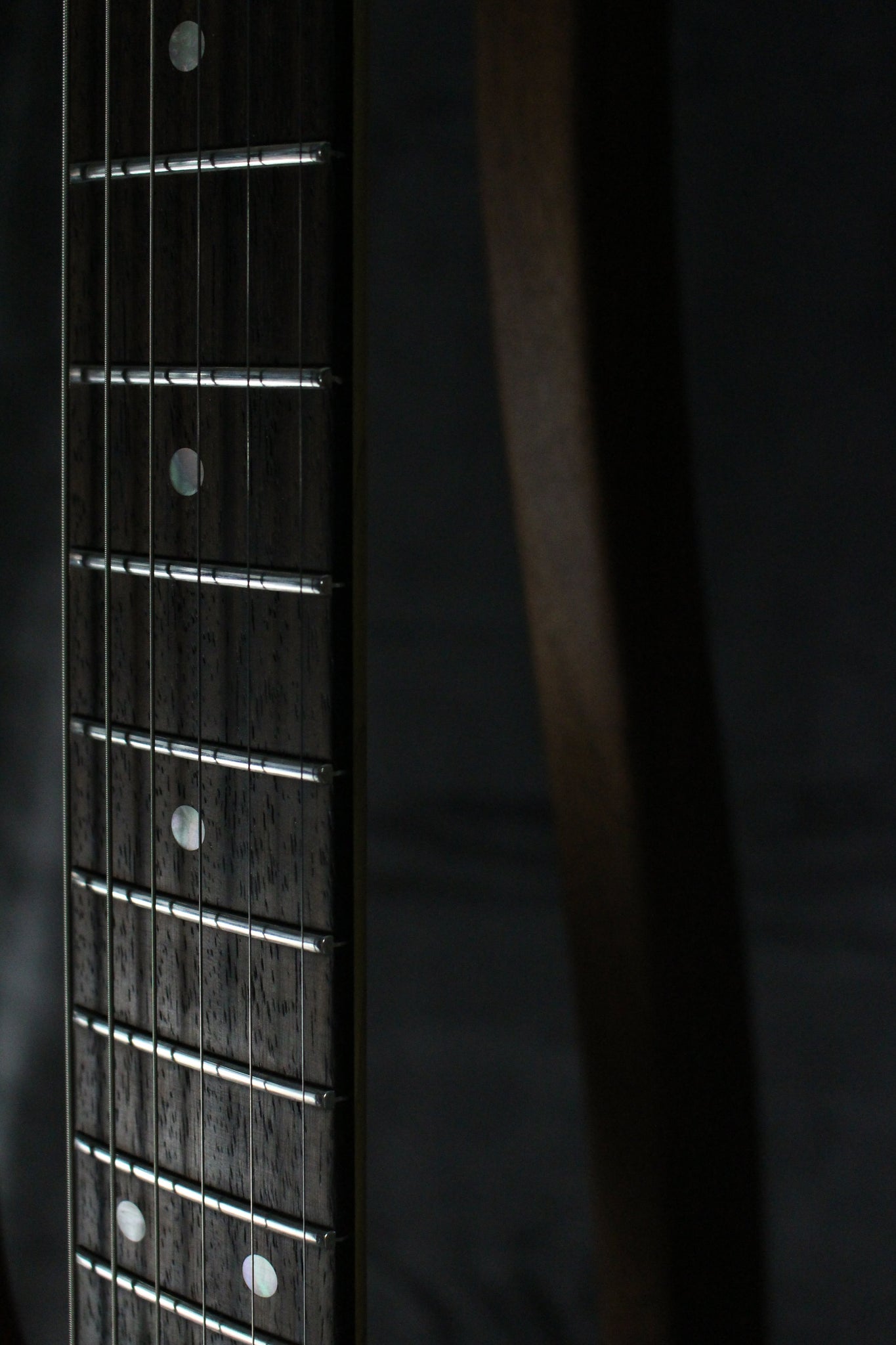 Neck: Hard Rock Maple neck with a Rosewood fingerboard with a 12” radius, 25.5” scale length, 1.685” nut width, 22 frets, Pearl dot inlays.